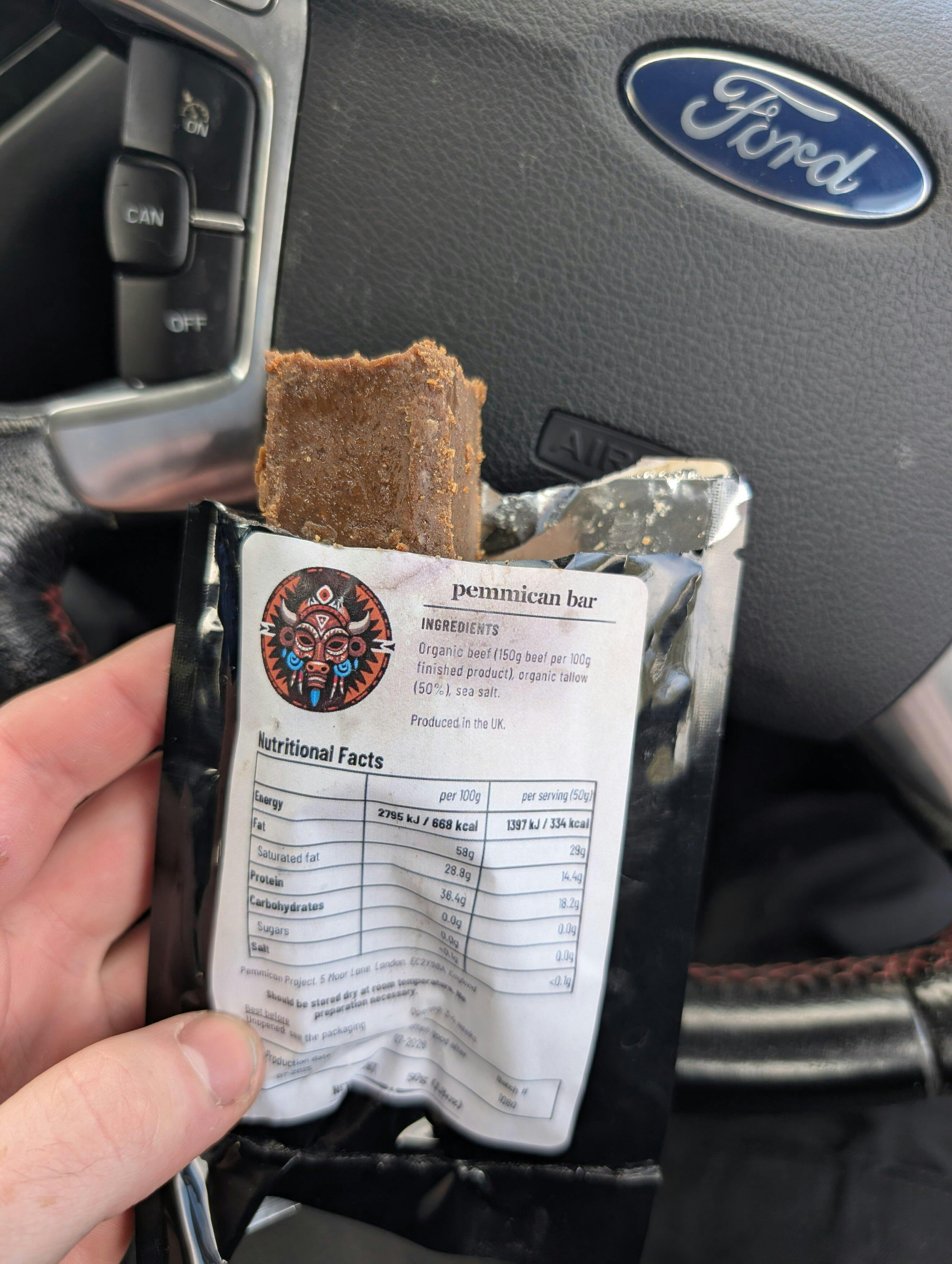 • 1 original Pemmican bar (100% beef + salt)